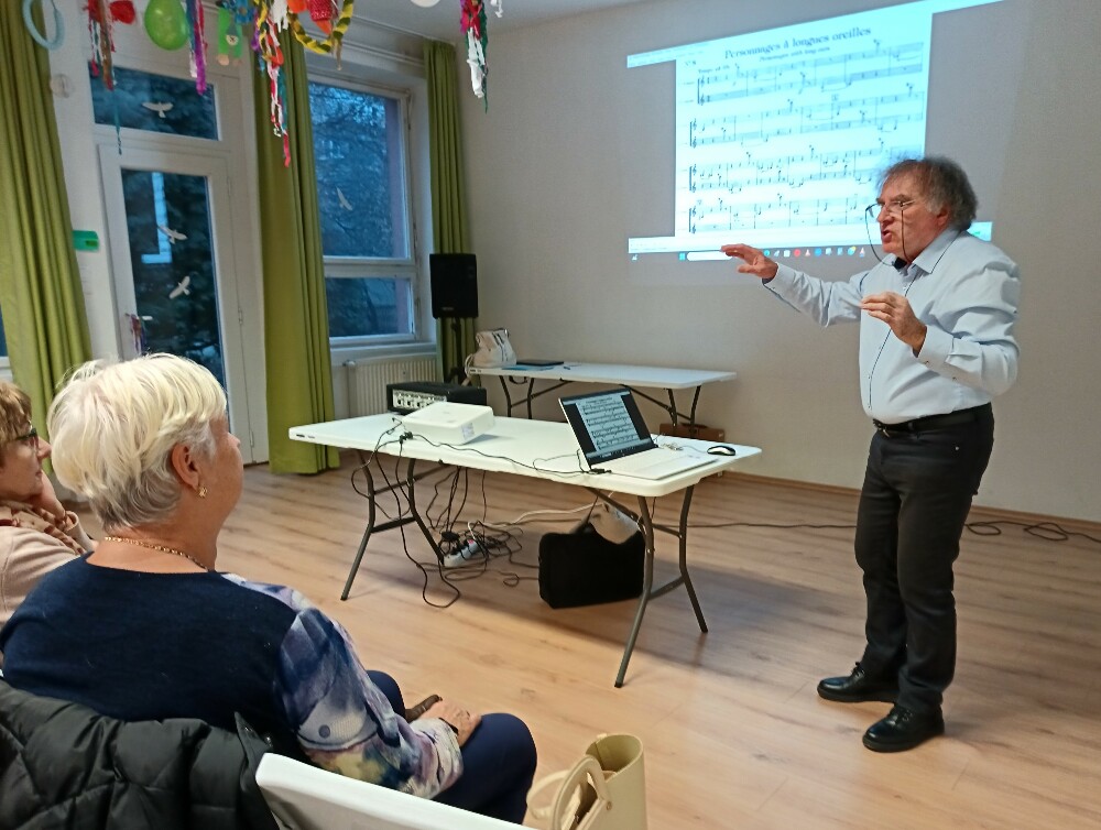 Melyik hangszerrel testesíthető meg legjobban a szamár? Melyikkel lehet visszaadni a hattyú kecsességét? Melyik idézi fel egy madárház csivitelő zaját? Horváth Imre karnagy, a Jászai Utcai Közösségi Tér vendége elgondolkodtató kérdéseket tett fel a közönségnek mielőtt felcsendültek Camille Saint-Saëns dallamai. Az állatok farsangjának tételeivel és elemzésével a zenepedagógus élvezetes előadásban mutatta meg, hogyan lehet a komolyzenével is igazán vidám forgatagot varázsolni.